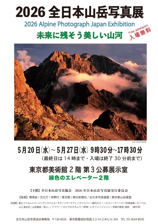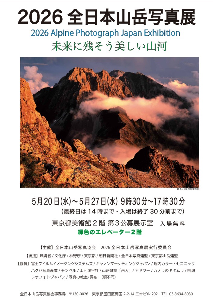 2026 全日本山岳写真(2026 APJ展)を5月20日(水)~5月27日(水) 、東京都美術館にて開催します。入場無料です。皆様のご来場をお待ちしております。